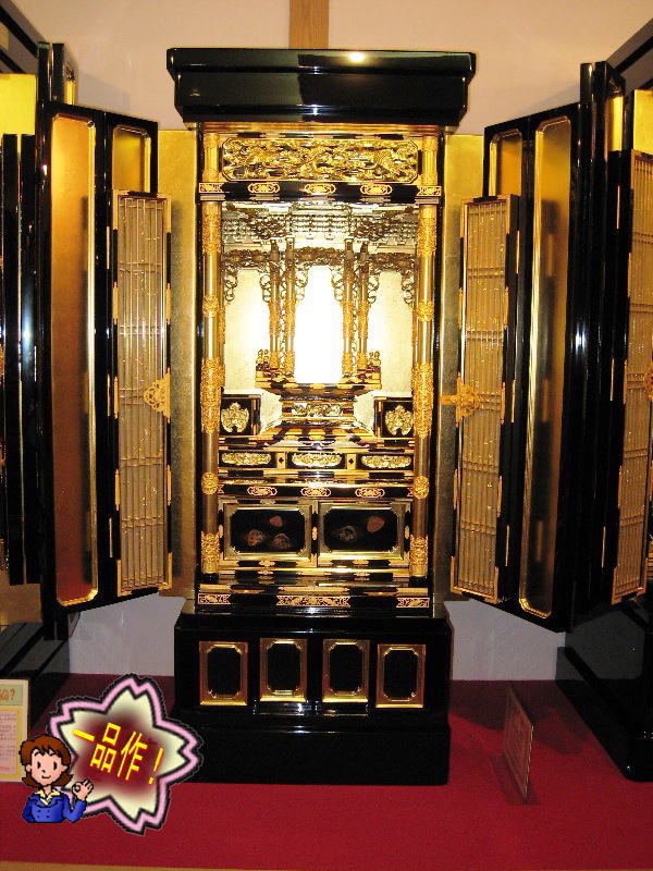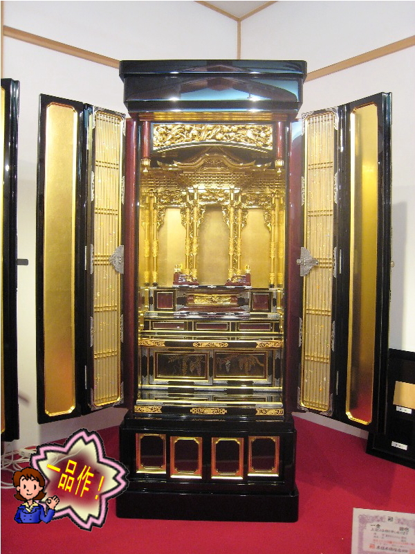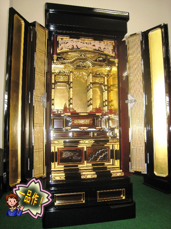 - 蒔絵は海をイメージした新柄。透かし金具は完全手作りです。 欄間は木曽ヒノキを使用して「藤」を彫りました。上品に仕上がったと思います。 宮殿は大谷派です。 詳細を見る