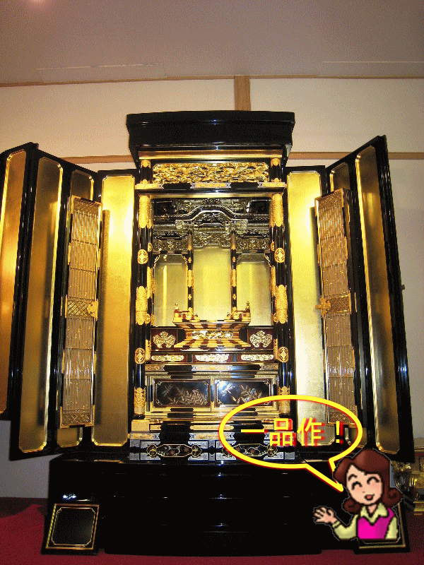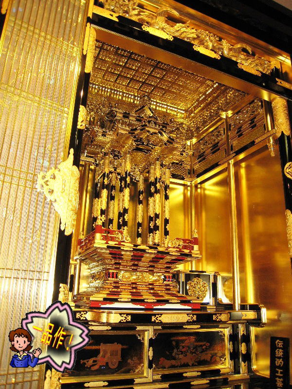 - 内部は御堂造り。宮殿が独立した製造法で、熟練を要します。 蒔絵は、加賀で修行を積んだ大坪美智子の作品。加賀の磨き蒔絵をふんだんに使用しています。 詳細を見る